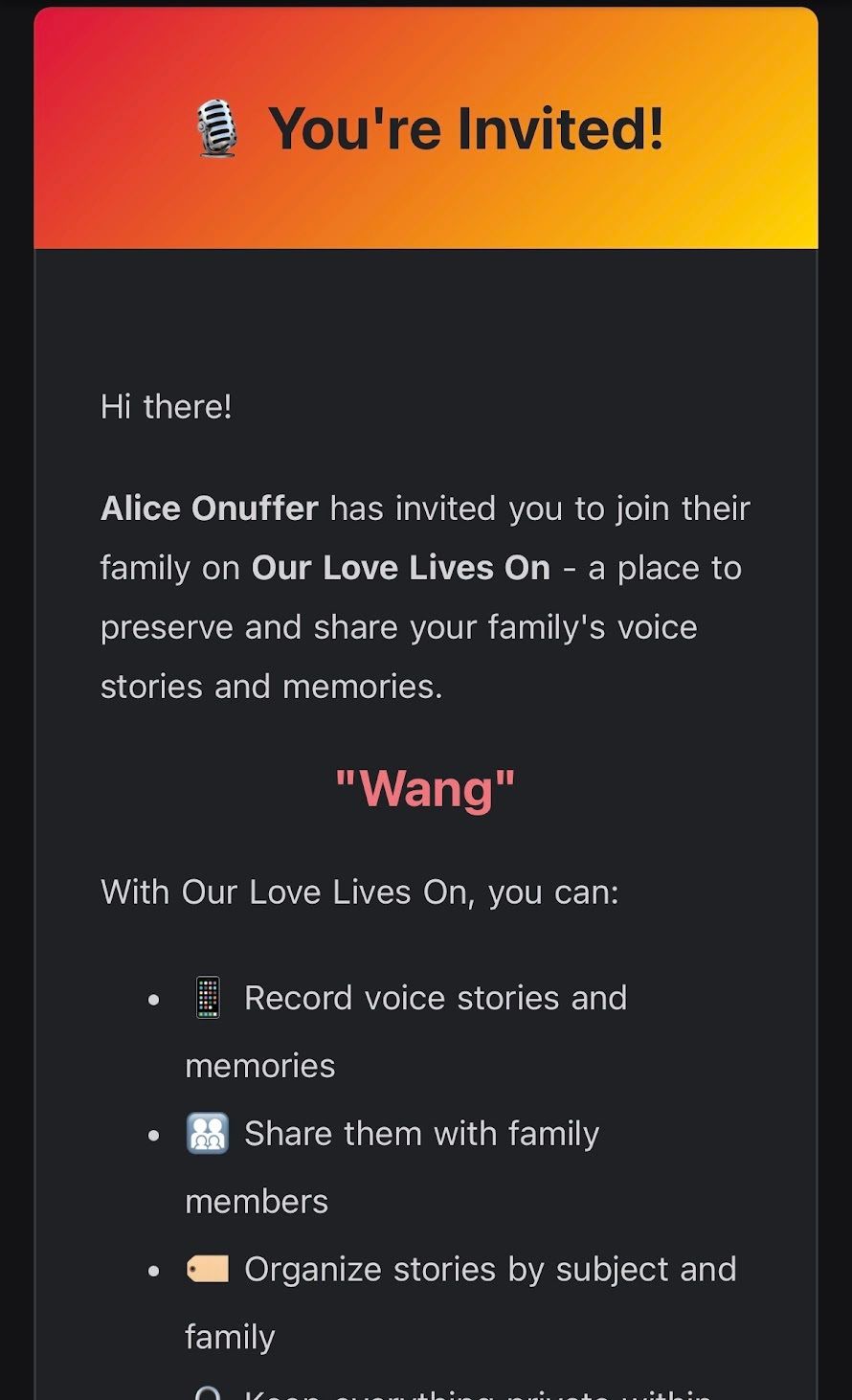 Our Love Lives On, the family legacy app, is on the web for a small group of users. It’s in a very basic form, ready to keep taking shape. Let me know if you want to experience early access!